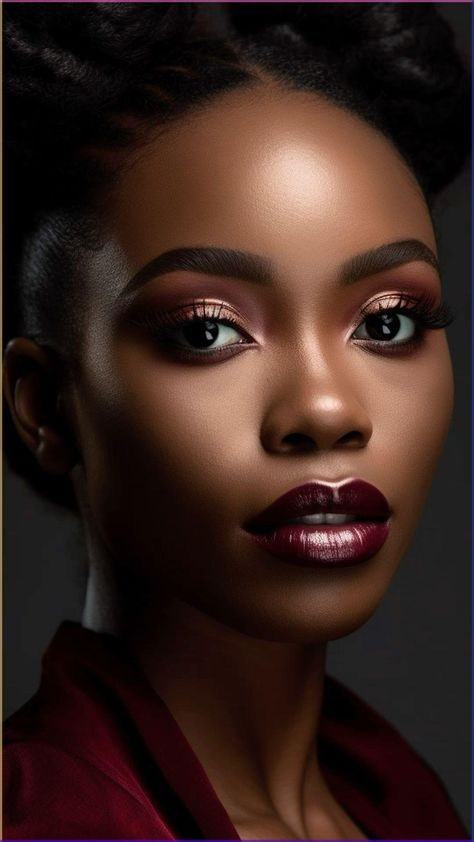Además, combina con todo tipo de vestimenta y estilos. Desde atuendos casuales hasta los más formales, el rojo vino realza tu maquillaje sin esfuerzo. Por eso, es ideal para quienes buscan un maquillaje atemporal para piel negra.