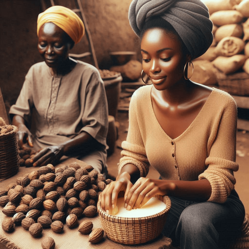Me fascinó saber que la manteca de karité no era solo un producto de belleza, sino una tradición profundamente arraigada en la cultura de Ghana. Mujeres de generaciones pasadas y presentes cosechan las nueces de karité, las secan al sol y las transforman en esa rica manteca que ha nutrido sus pieles durante siglos, en climas extremos y bajo condiciones que desafiaban la resistencia de la piel y el cabello. Sin productos químicos, sin conservantes, solo pura bondad natural.